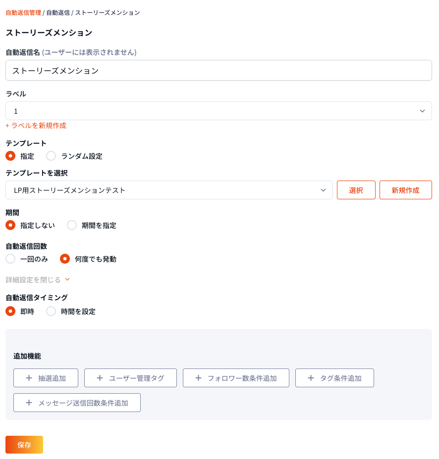 ※ここまでで、シンプルなストーリーズメンションとしての利用が可能です。